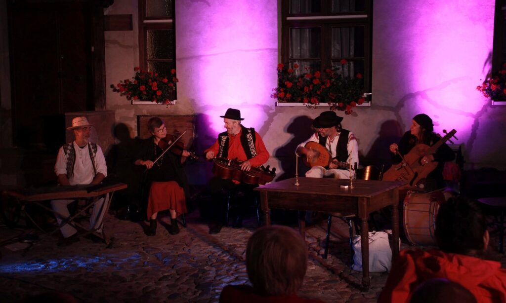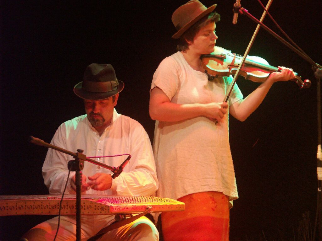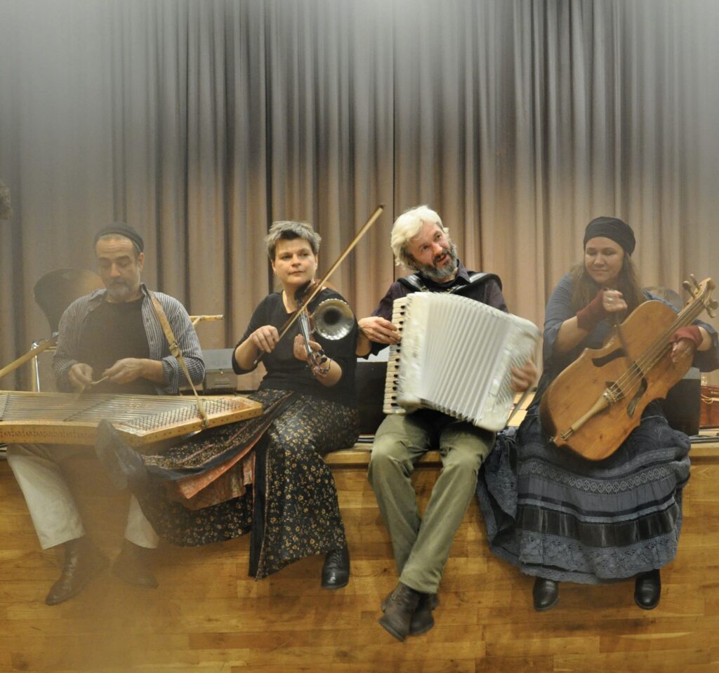 They define their approach to music as a creative following of tradition. In their art, they draw on the traditions of many Eastern European ethnic groups: Ashkenazi Jews, Roma, Lemkos, Boykos, and many others who contributed to the richness of Polish tradition. They play on rare instruments such as the crank lyre, cimbalom, utögardon, shepherd flutes, and drumla, evoking the atmosphere and sound of old village bands.